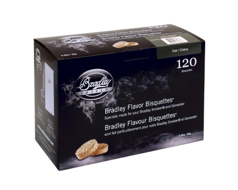 Bradley Smoker digitala rökskåp förbrukar 3 briketter per timme. När briketten är förbrukad knuffas den ned i en vattenskål av nästa brikett och slocknar. Det pågår så länge det finns briketter kvar i matarröret eller tills din inställda tid för brikettmatning är uppnådd.