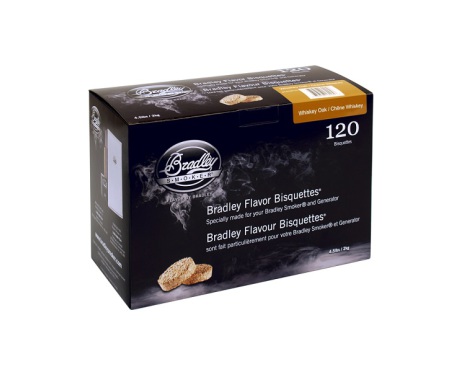 En Bradley Smoker-brikett som är tillverkad av ekfat från whiskeytillverkning. Passar bra till nötkött, vilt, fläsk och är en favorit till kalkon. 120 briketter vilket ger en röktid på 40 timmar.