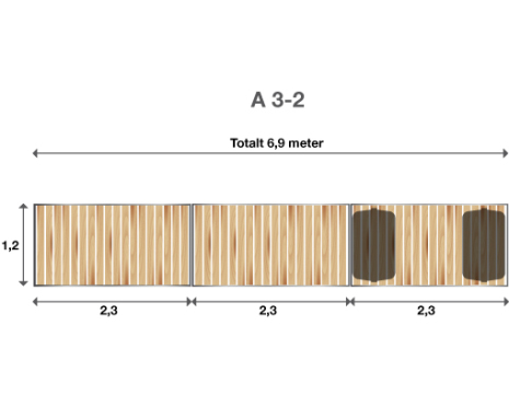 - 3 sektioner med 21 mm spikat trädäck i tryckimpregnerad tall