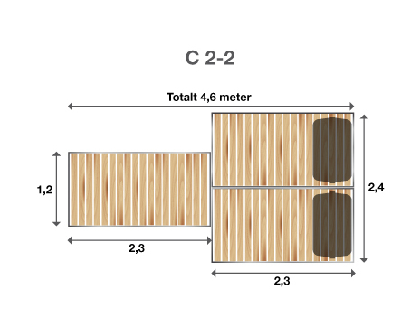 - Bredd 2.4 meter, landgångens bredd 1.2 meter