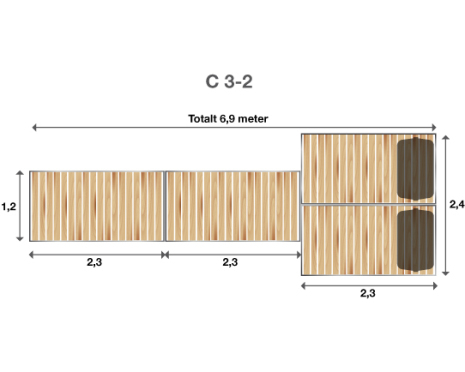 Brygga med 3 rullande pontoner och en bred, stabil bryggdel längst ut. Total längd 6.9 meter.från 55 130 kr