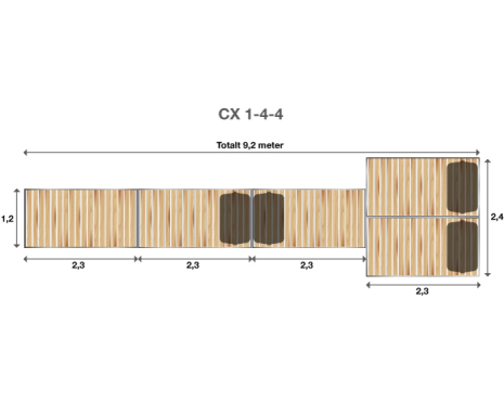 - Bredd 2.4 meter, landgångens bredd 1.2 meter