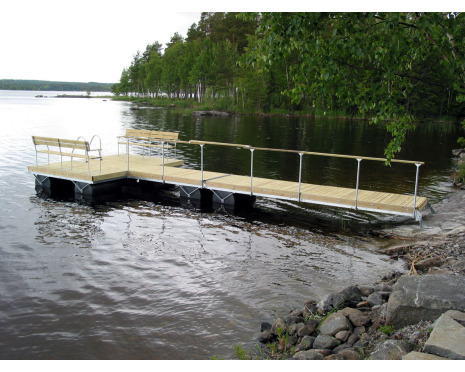 Brygga med 2 rullande pontoner och en bred, stabil bryggdel längst ut. Total längd 6.9 meter.från 49 900 kr