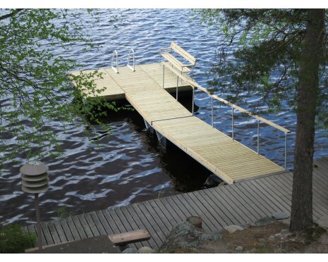 - Den extra breda bryggdelen längst ut gör den här bryggan mycket stabil