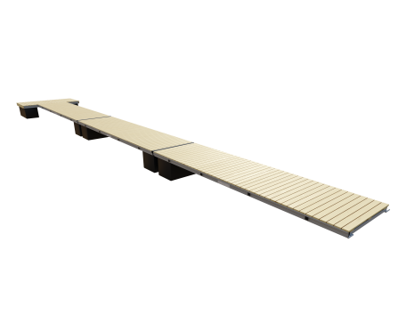 Brygga Ulpukka ULBX 2-7-6 är en brygga med en totallängd på hela 15 meter. Den består av 7 sektioner, vardera 1.2 m x 2.3 m. Ett gångjärn på mitten av landgången gör att din brygga, oavsett vattenstånd, alltid ligger i våg utanför gångjärnet.