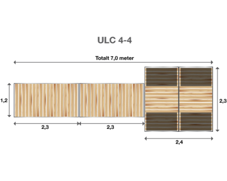 Brygga Ulpukka ULC 4-4 är en brygga med en totallängd på 7 meter. Den består av 4 sektioner, vardera 1.2 m x 2.3 m. Den stora stabila bryggdelen längst ut gör att bryggan känns rymlig att vistas på.