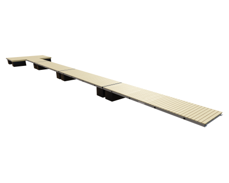 - 3st gångjärn på landgången gör att bryggan, oavsett vattenstånd, alltid ligger i våg utanför gångjärnet