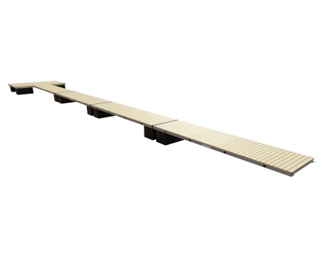 - 3st gångjärn på landgången gör att bryggan, oavsett vattenstånd, alltid ligger i våg utanför gångjärnet