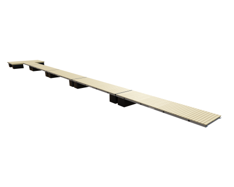 Brygga Ulpukka ULDX 4-10-12 är en stor brygga med en totallängd på hela 23 meter. Den består av 12 sektioner, vardera 1.2 m x 2.3 m. Den extra stora och mycket stabila bryggdelen längst ut mäter 3.6 m x 2.3 m och gör bryggan mycket rymlig, och tryggare att vistas på än en mindre. Fyra gångjärn på landgången gör att din brygga, oavsett vattenstånd, alltid ligger i våg utanför gångjärnet.