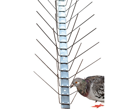 Fågelpiggar med fyra rader piggar. Både piggar och bottenplatta är tillverkade i rostfritt stål som ger lång hållbarhet. Hindrar effektivt fåglar att landa och smutsa ned.
