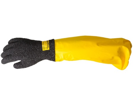 Vattentät fingerhandske med 35 cm förlängning. Grov och tät granulat som ger optimalt grepp vid hantering av fisk, tunga handhållna maskiner, byggskivor, virke m.m. och den är mycket tålig mot skavande och vassa föremål. Den långa vattentäta förlängningen skyddar mot vatten- och smutsstänk. Handsken används inom fiskeindustrin, avlopps- och avfallshantering och inom indstrin. Komplettera med handske Thermo Pro för extra foder så håller du dig riktigt varm, välj då en storlek större på Jokahold.