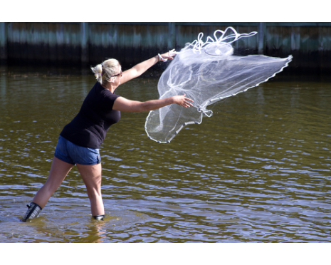 - Tunga blysänken gör att kastnätet snabbt stänger igen när det landar i vattnet