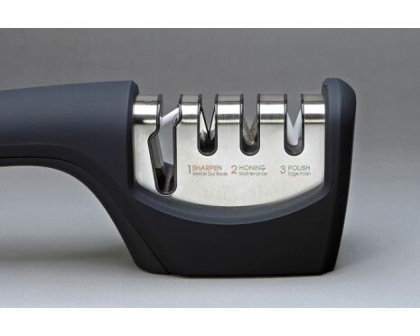 Ställ in vässningsvinkeln på inställningsreglaget genom att trycka lätt och rotera till önskat läge. I paketet och på sidan av vässaren finns tillverkarens rekommendationer för rätt vinkel.