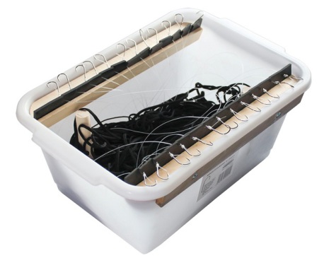 - Gummilist med skåror håller krokarna på plats