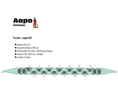 BESTÄLLNINGSVARA. Fiskhus 8 meter, 12 meter ledarm + sidoarmar. Maska 10 mm.21 690 kr