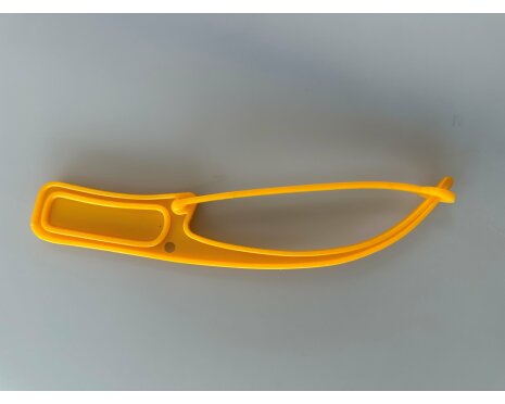 Nätsticka Laxen säkerhetsnål gul med utrymme för text i handtaget.