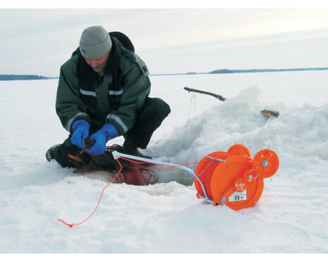 Använd Härveli när du vill dra en lina mellan två vakar för att lägga fiskenät eller lakryssjor under isen.
