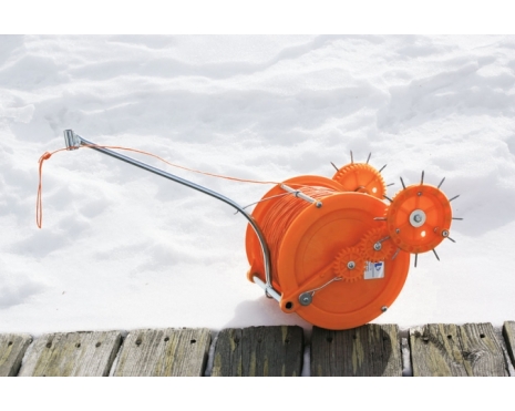 Härveli nätutläggare underlättar ditt isfiske och är en smart konstruktion som gör det enkelt att placera en lina under isen mellan två vakar. Linan under isen använder du sedan när du ska dra fiskenät eller en lakryssja på plats. Härveli är konstruerad så att när du drar i linan åker Härveli åt motsatt håll under isen. Följ Härveli genom att gå på isen ovanför den och när den kommit så långt du vill sågar du upp nästa vak med vår issåg.