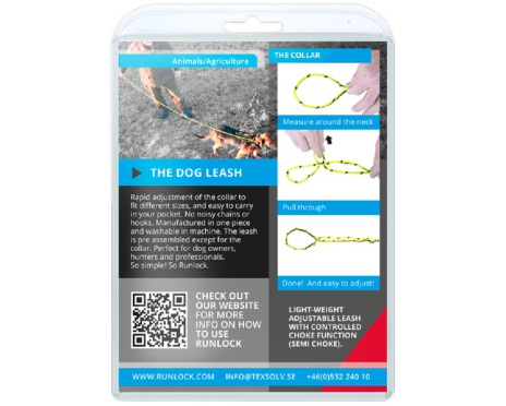 Med Runlock hundkoppel behöver hunden inget halsband och du slipper metallkedjor som rasslar. Med Runlock behövs inga knutar och du skapar snabbt och enkelt fasta öglor, snaror och lås som är enkla att låsa upp och som inte glider.