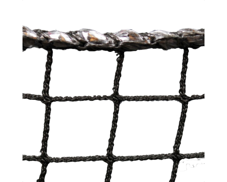 Knutlöst skyddsnät i 25 mm maska tillverkat av 1.8 mm svart polypropylen. Nätet är förstärkt i ytterkanterna med en kraftig lina som är fastsydd i nätet. Det här skyddsnätet används som uppfångningsnät på golfranger eller runt återvinningsstationer. Priset visas inklusive moms.